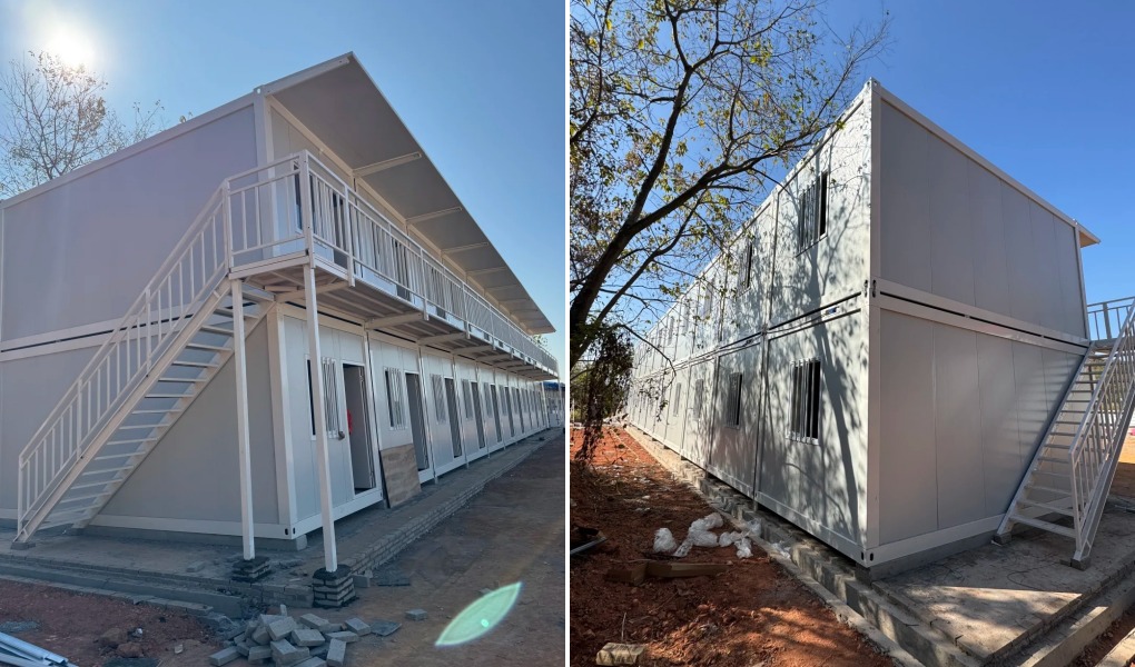 Như thể hiện trong dự án, tất cả các nhà container đều được lắp đặt theo cấu hình hai tầng, với 10 căn ở tầng trệt và 10 căn ở tầng trên. Thiết kế xếp chồng theo chiều dọc này tối đa hóa việc sử dụng đất, điều này đặc biệt quan trọng đối với các công trường xây dựng có diện tích hạn chế.